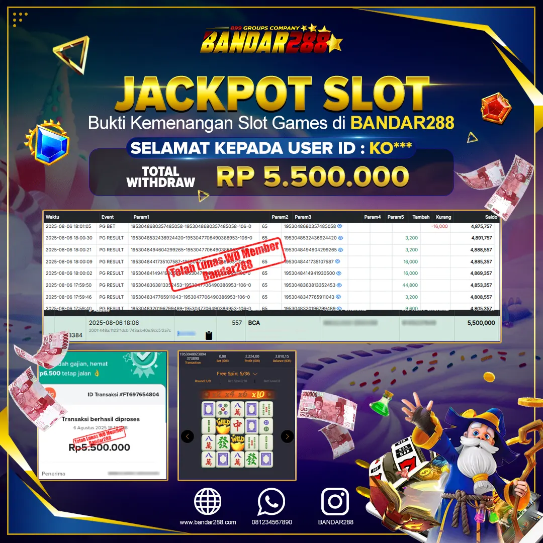 Bukti kemenangan member adalah bukti bahwa anda juga berhak atas semua kemenangan yang ada di situs slot gacor Bandar288. Link