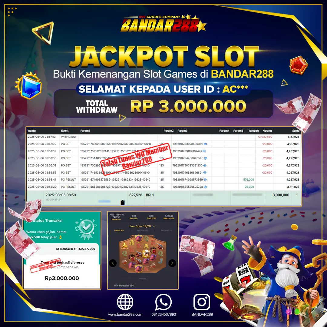 Bukti kemenangan member adalah bukti bahwa anda juga berhak atas semua kemenangan yang ada di situs slot gacor Bandar288. Link