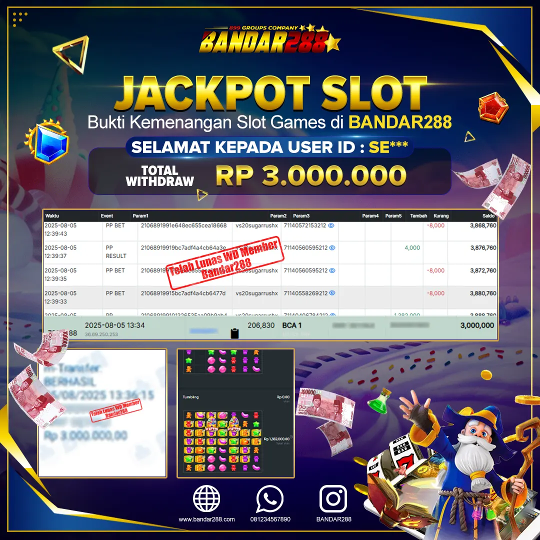 Bukti kemenangan member adalah bukti bahwa anda juga berhak atas semua kemenangan yang ada di situs slot gacor Bandar288. Link