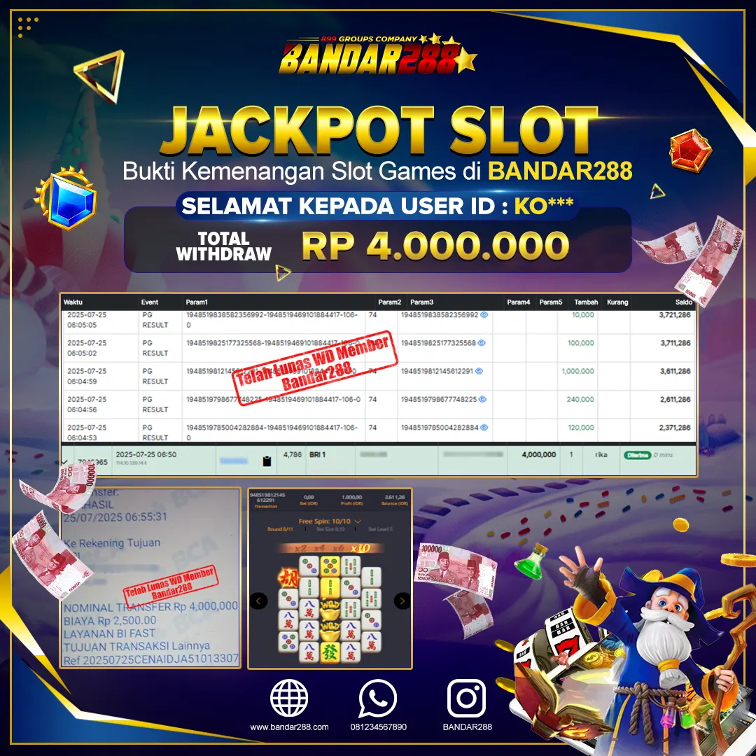 Bukti kemenangan member adalah bukti bahwa anda juga berhak atas semua kemenangan yang ada di situs slot gacor Bandar288. Link