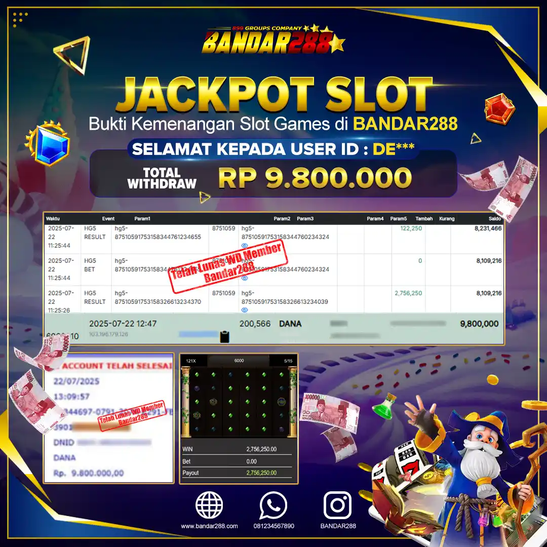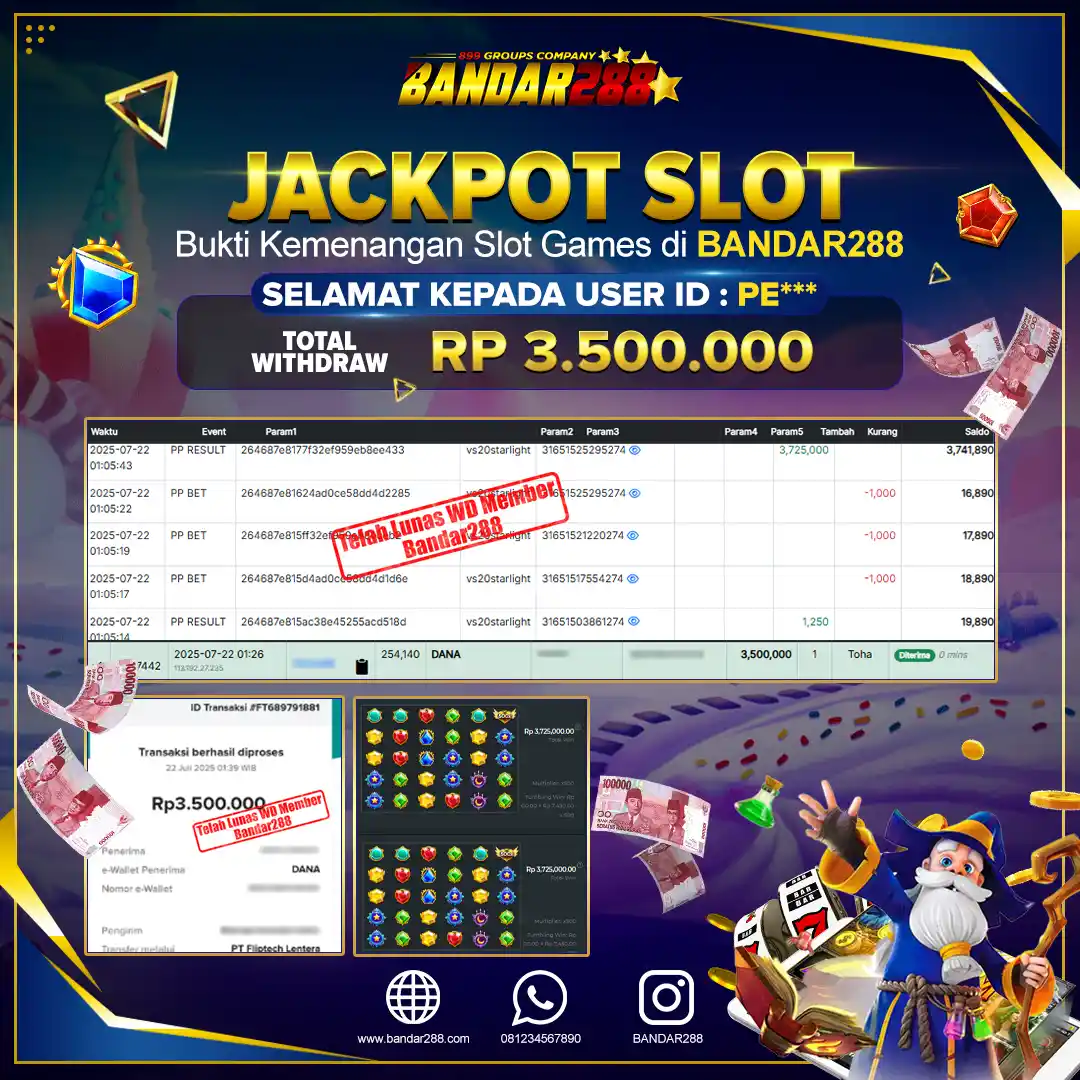 Bukti kemenangan member adalah bukti bahwa anda juga berhak atas semua kemenangan yang ada di situs slot gacor Bandar288. Link