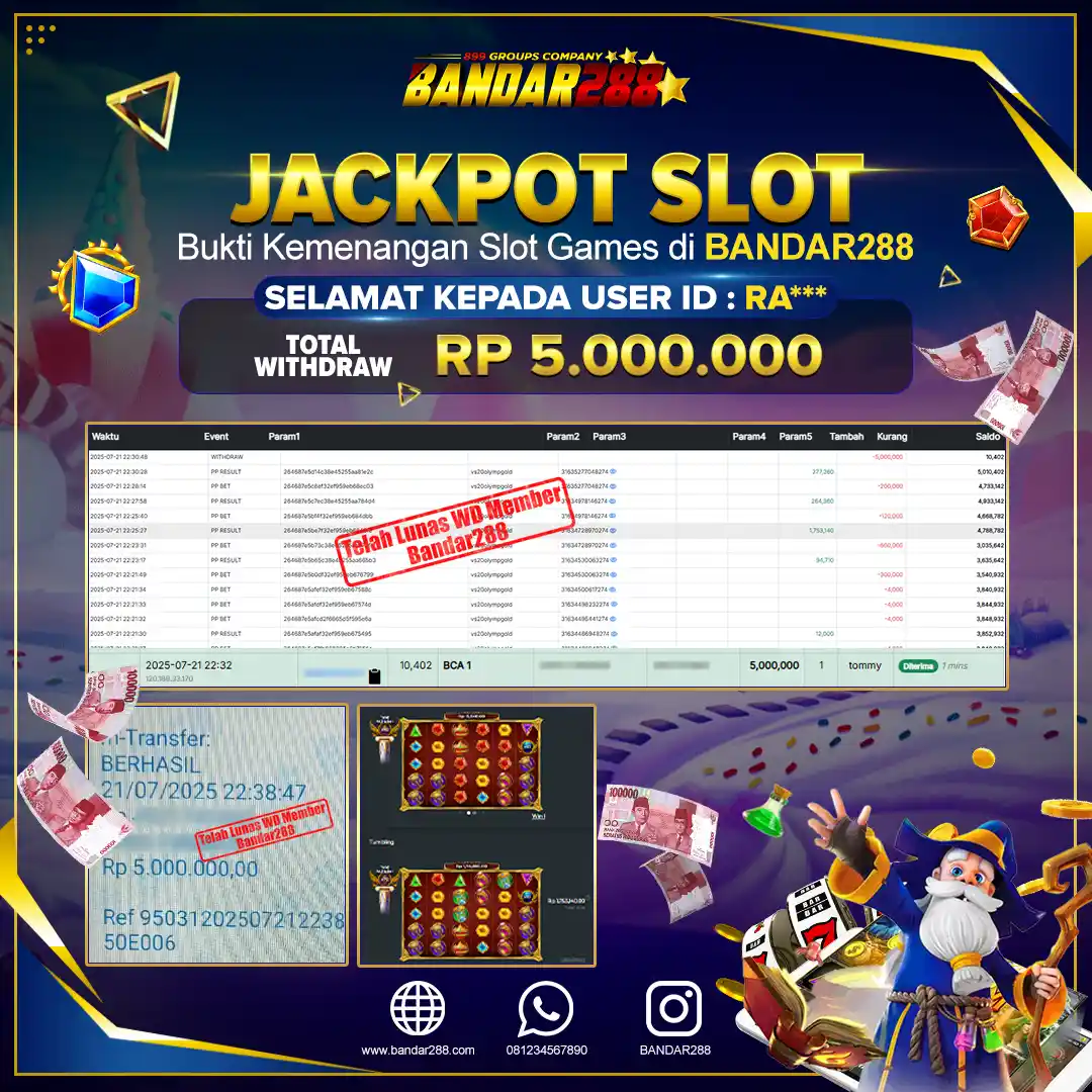 Bukti kemenangan member adalah bukti bahwa anda juga berhak atas semua kemenangan yang ada di situs slot gacor Bandar288. Link