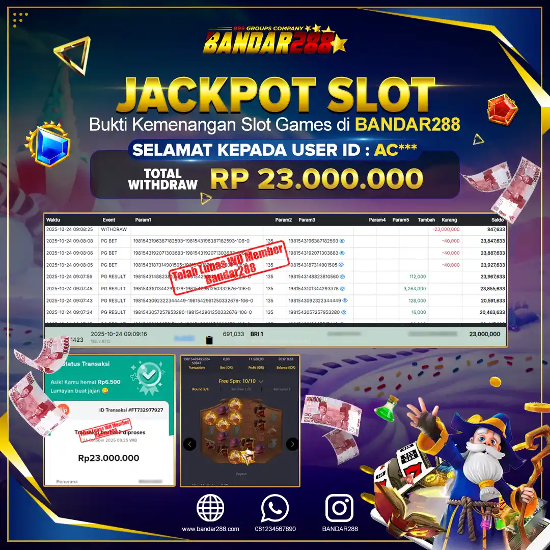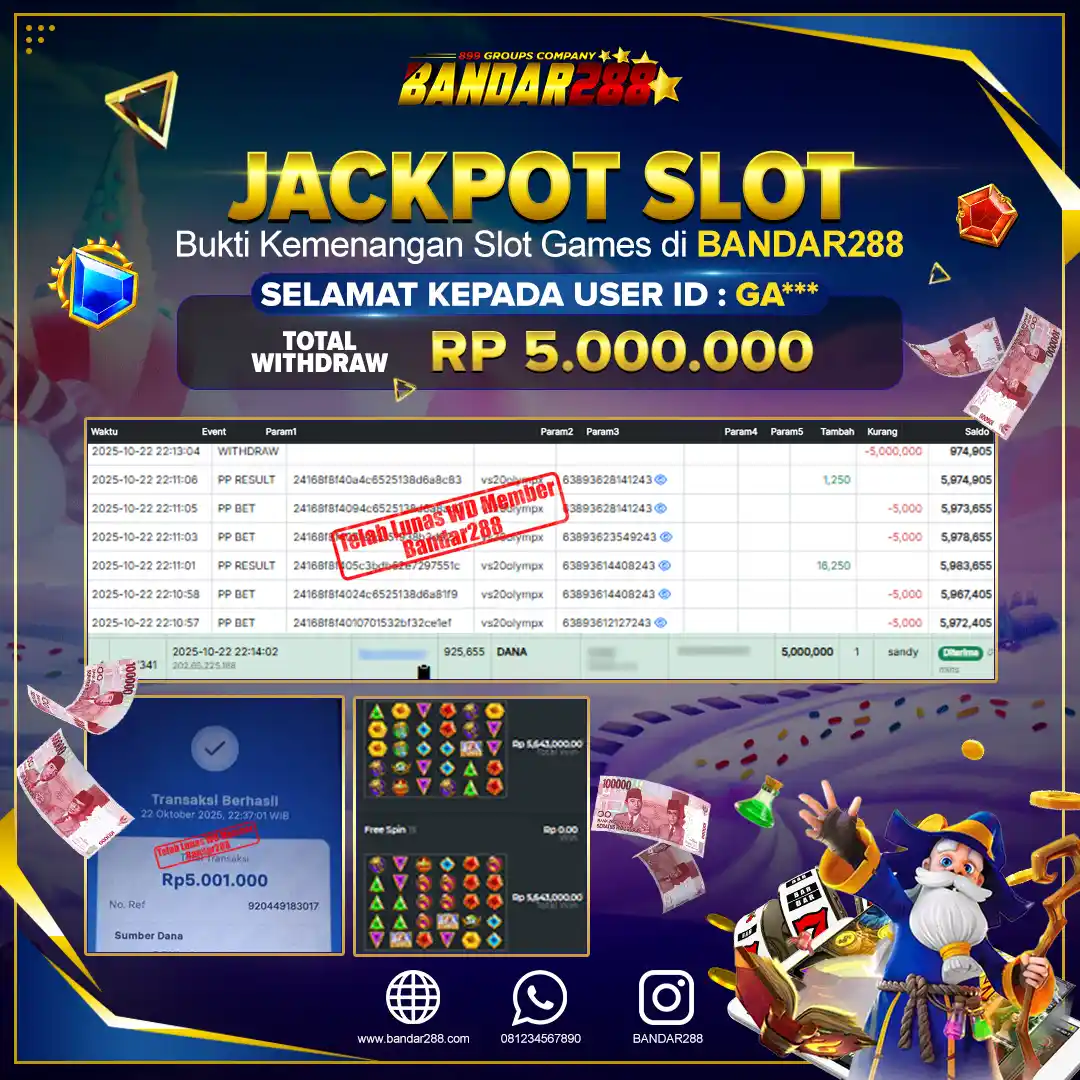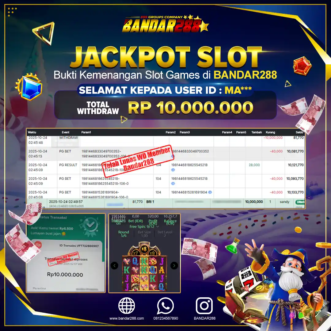 Bukti kemenangan member adalah bukti bahwa anda juga berhak atas semua kemenangan yang ada di situs slot gacor Bandar288. Link