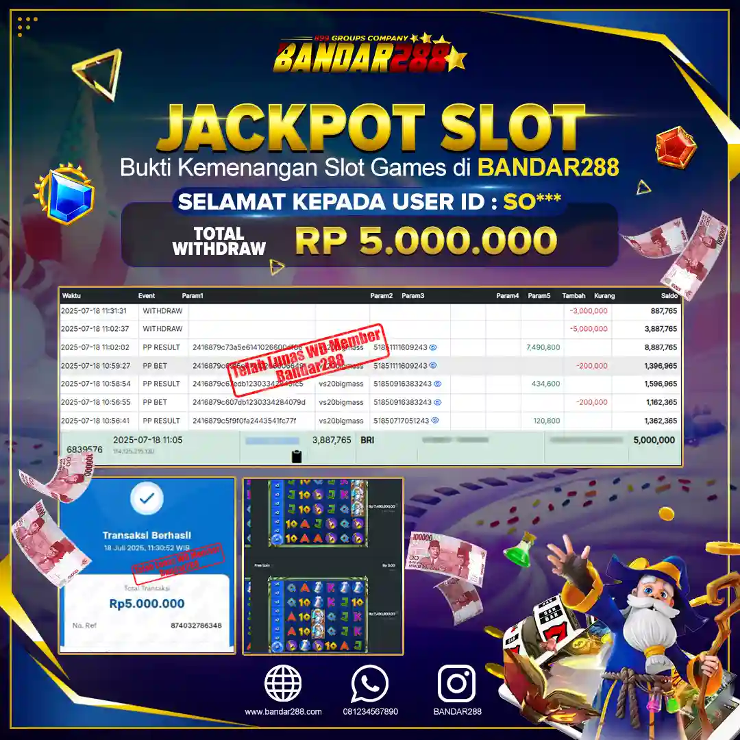 Bukti kemenangan member adalah bukti bahwa anda juga berhak atas semua kemenangan yang ada di situs slot gacor Bandar288. Link