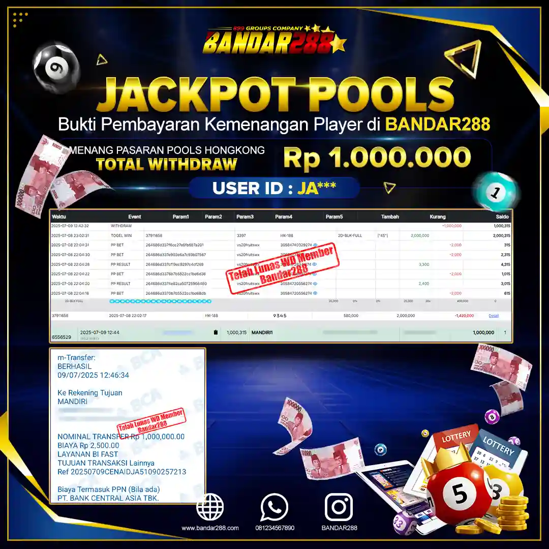 Bukti kemenangan member adalah bukti bahwa anda juga berhak atas semua kemenangan yang ada di situs togel gampang jackpot Bandar288.