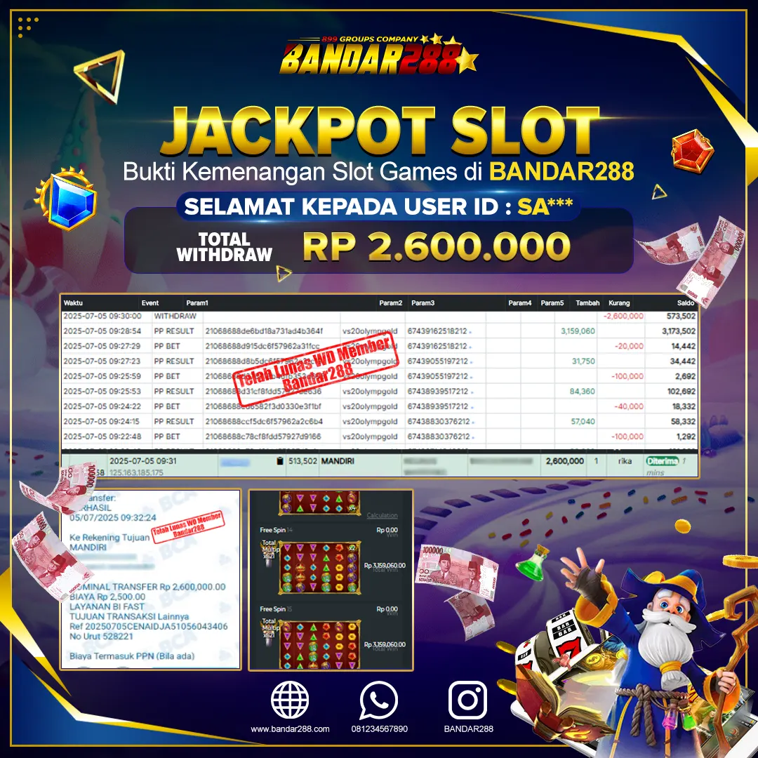 Bukti kemenangan member adalah bukti bahwa anda juga berhak atas semua kemenangan yang ada di situs slot gacor Bandar288. Link