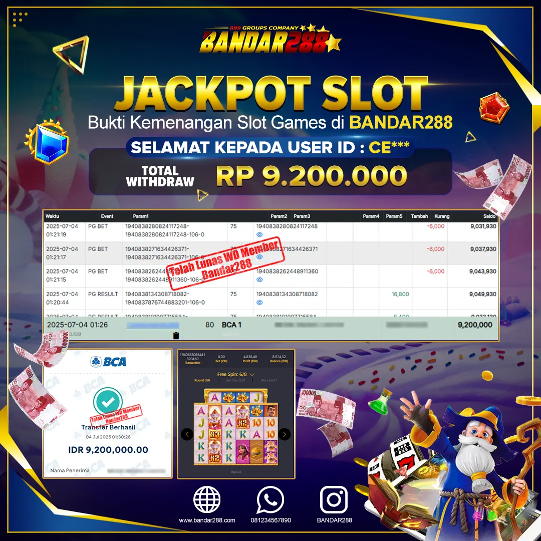 Bukti kemenangan member adalah bukti bahwa anda juga berhak atas semua kemenangan yang ada di situs slot gacor Bandar288. Link