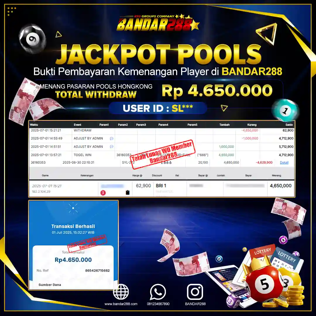 Bukti kemenangan member adalah bukti bahwa anda juga berhak atas semua kemenangan yang ada di situs togel gampang jackpot Bandar288.