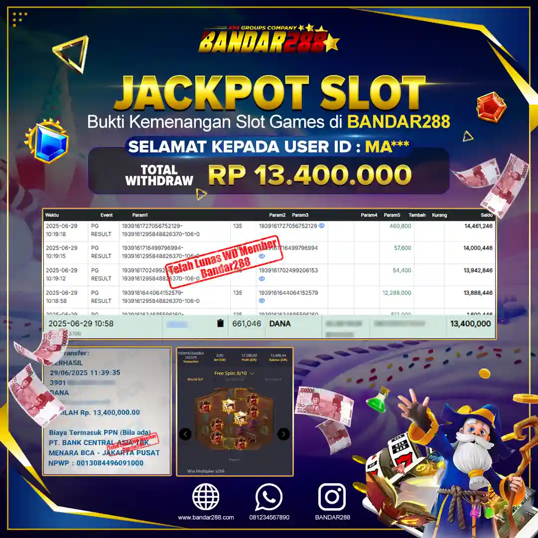 Bukti kemenangan member adalah bukti bahwa anda juga berhak atas semua kemenangan yang ada di situs slot gacor Bandar288. Link