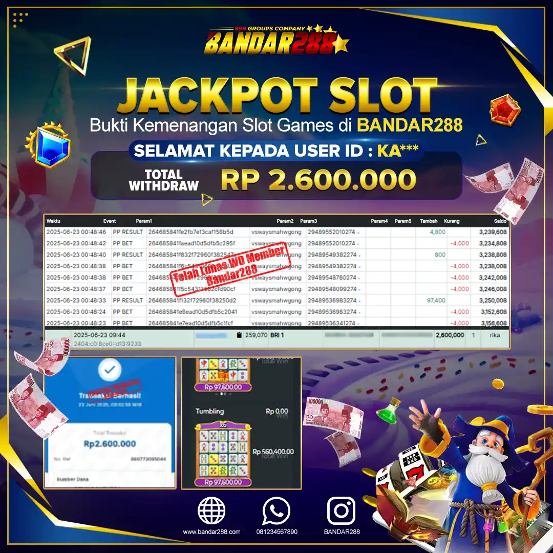Bukti kemenangan member adalah bukti bahwa anda juga berhak atas semua kemenangan yang ada di situs slot gacor Bandar288. Link