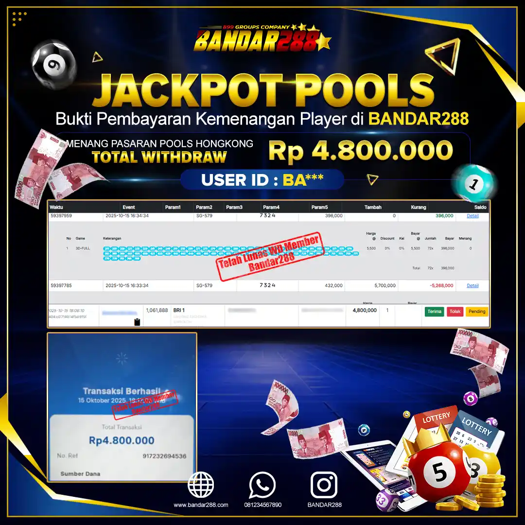 Bukti kemenangan member adalah bukti bahwa anda juga berhak atas semua kemenangan yang ada di situs togel gampang jackpot Bandar288.
