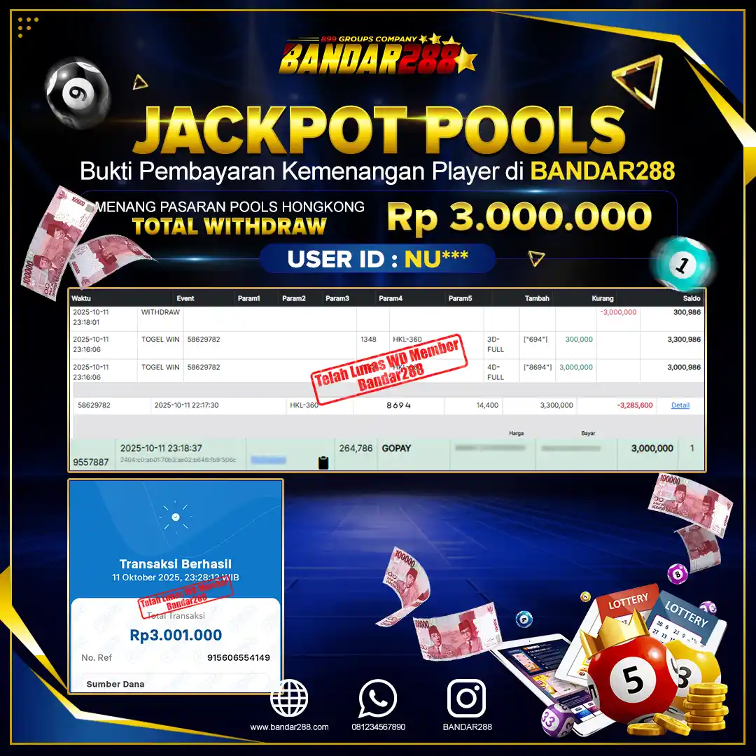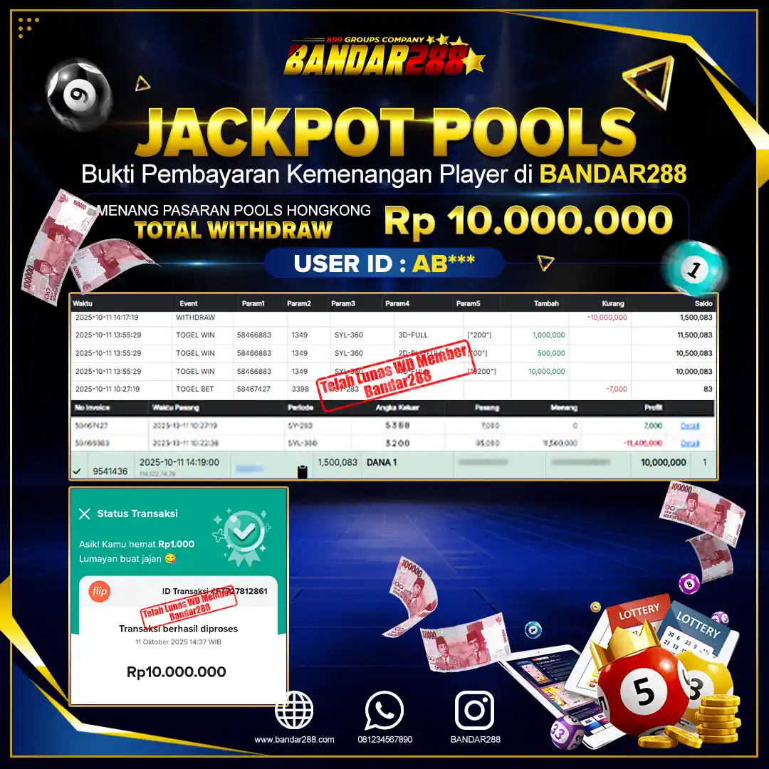 Bukti kemenangan member adalah bukti bahwa anda juga berhak atas semua kemenangan yang ada di situs togel gampang jackpot Bandar288.