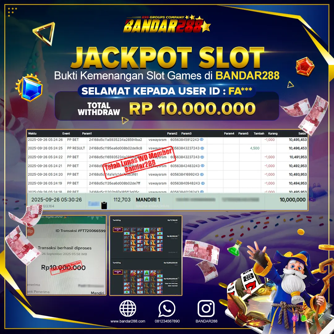 Bukti kemenangan member adalah bukti bahwa anda juga berhak atas semua kemenangan yang ada di situs slot gacor Bandar288. Link