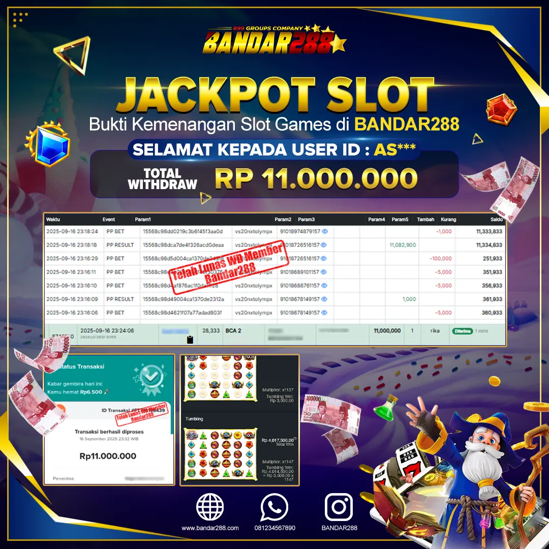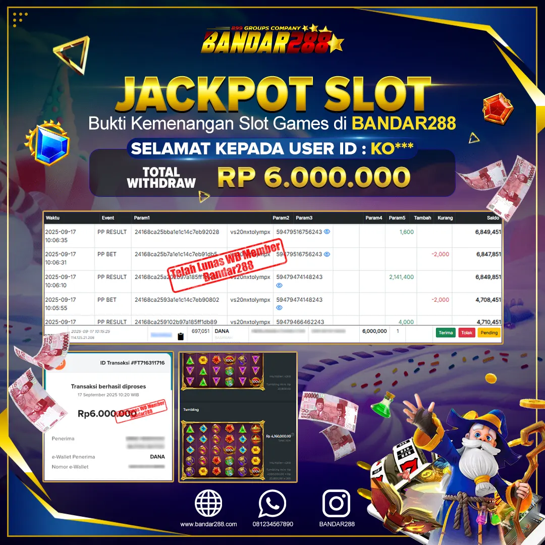 Bukti kemenangan member adalah bukti bahwa anda juga berhak atas semua kemenangan yang ada di situs slot gacor Bandar288. Link