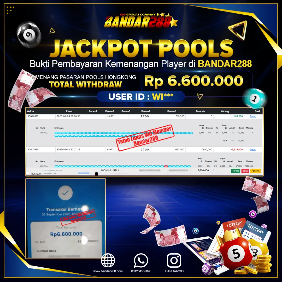 Bukti kemenangan member adalah bukti bahwa anda juga berhak atas semua kemenangan yang ada di situs togel gampang jackpot Bandar288.