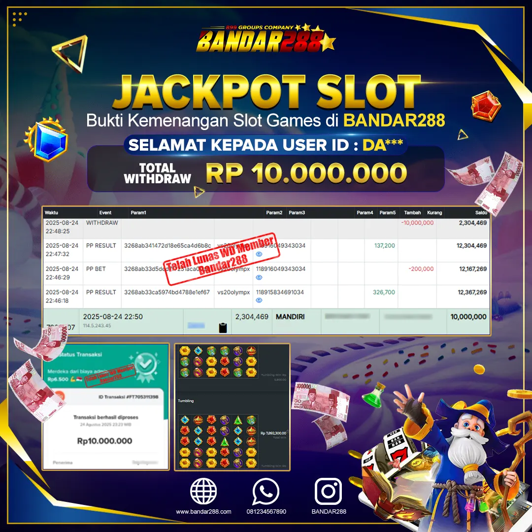 Bukti kemenangan member adalah bukti bahwa anda juga berhak atas semua kemenangan yang ada di situs slot gacor Bandar288. Link