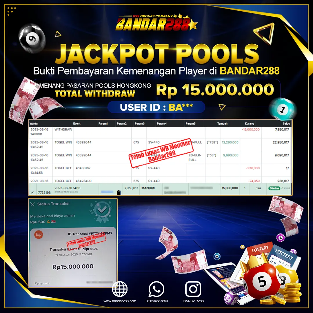 Bukti kemenangan member adalah bukti bahwa anda juga berhak atas semua kemenangan yang ada di situs togel gampang jackpot Bandar288.