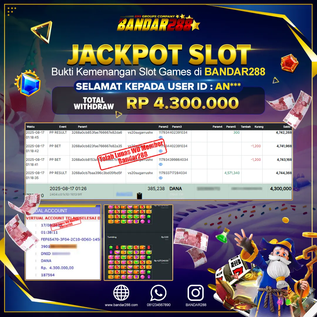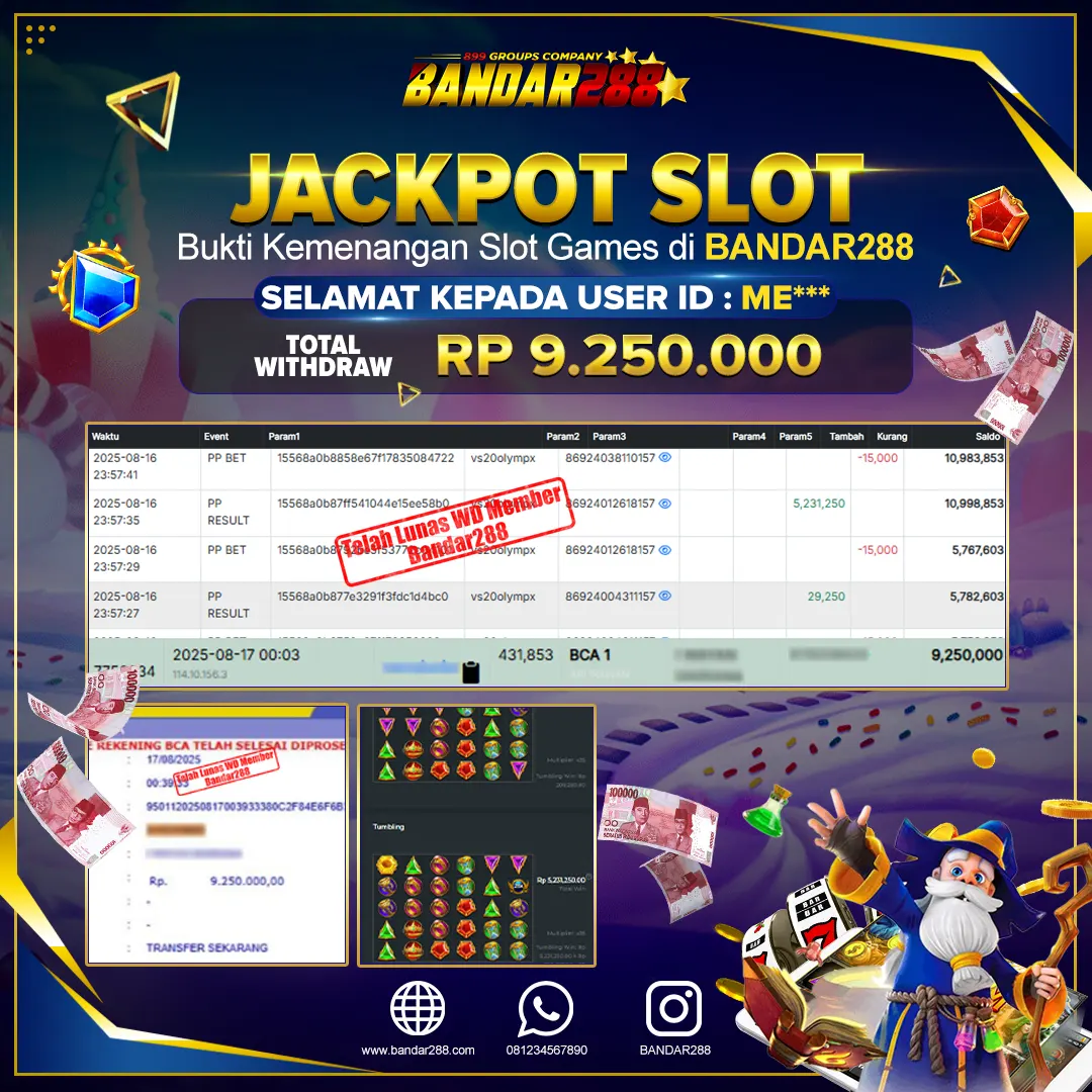 Bukti kemenangan member adalah bukti bahwa anda juga berhak atas semua kemenangan yang ada di situs slot gacor Bandar288. Link