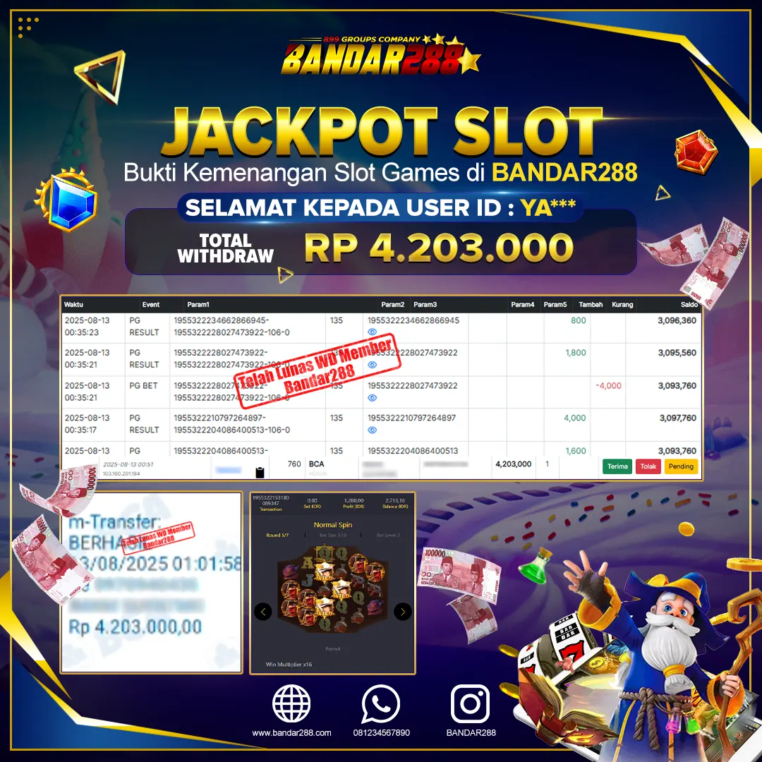 Bukti kemenangan member adalah bukti bahwa anda juga berhak atas semua kemenangan yang ada di situs slot gacor Bandar288. Link
