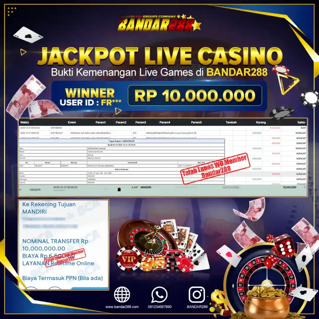 Bukti kemenangan member adalah bukti bahwa anda juga berhak atas semua kemenangan yang ada di situs live casino gampang jackpot Bandar288.