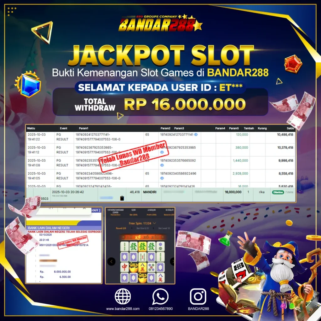 Bukti kemenangan member adalah bukti bahwa anda juga berhak atas semua kemenangan yang ada di situs slot gacor Bandar288.