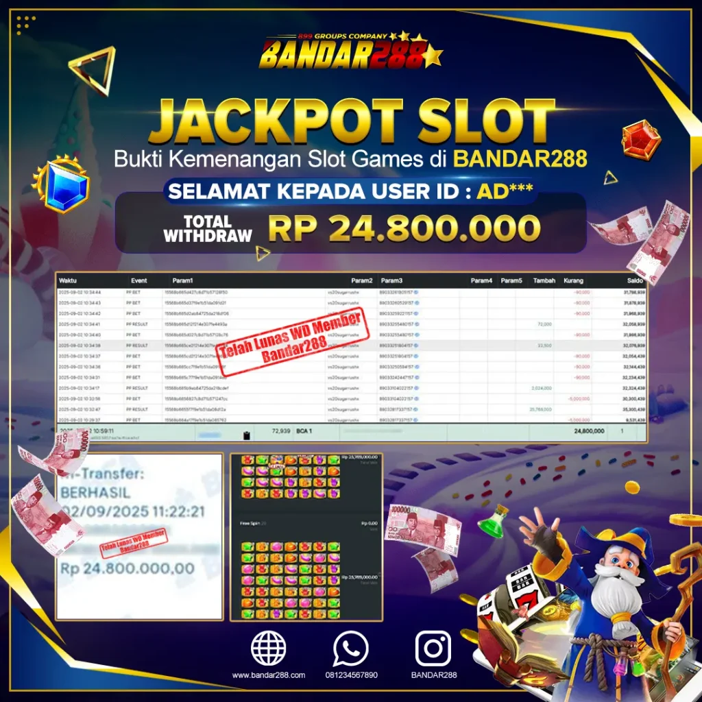 Bukti kemenangan member adalah bukti bahwa anda juga berhak atas semua kemenangan yang ada di situs slot gacor Bandar288.