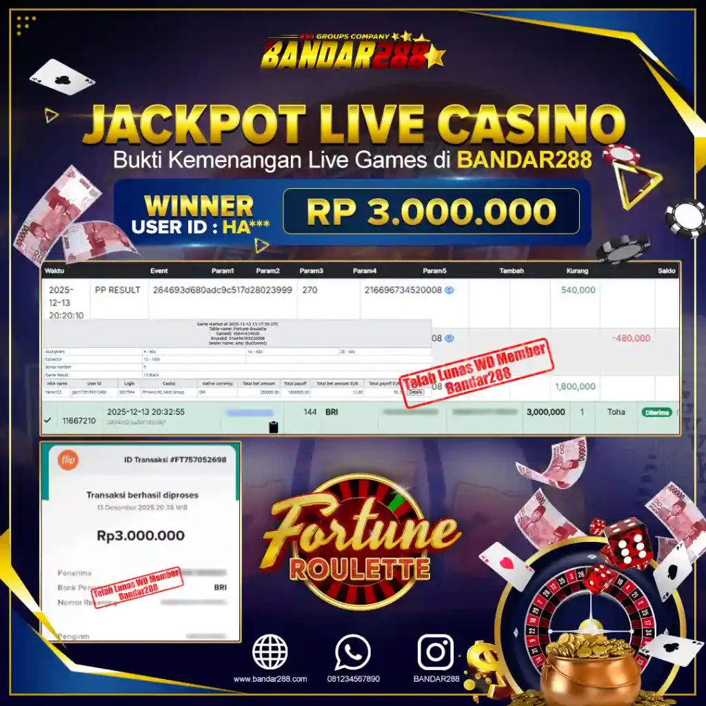Bukti kemenangan member adalah bukti bahwa anda juga berhak atas semua kemenangan yang ada di situs live casino gampang jackpot Bandar288.
