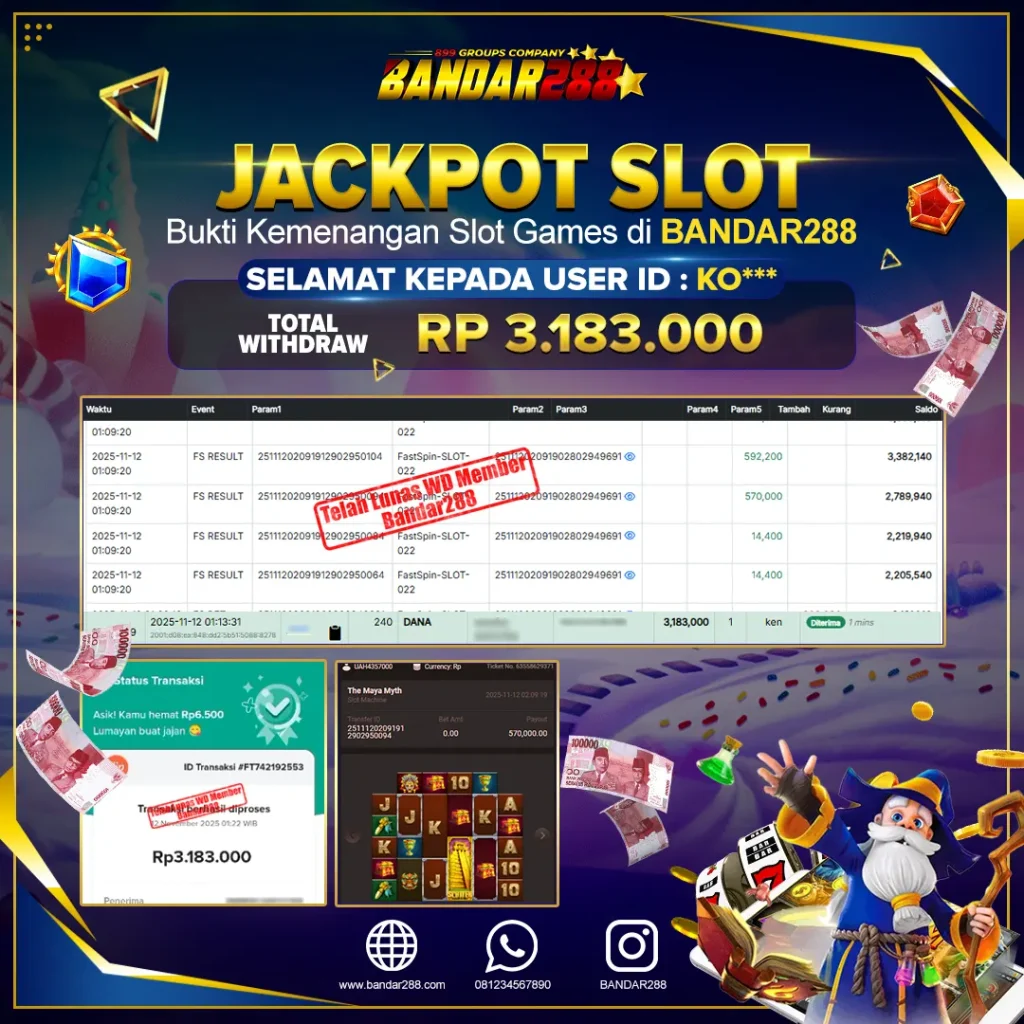 Bukti kemenangan member adalah bukti bahwa anda juga berhak atas semua kemenangan yang ada di situs slot gacor Bandar288.