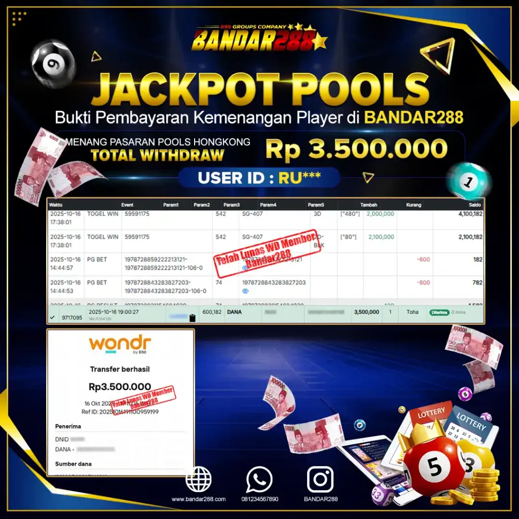 Bukti kemenangan member adalah bukti bahwa anda juga berhak atas semua kemenangan yang ada di situs togel gampang jackpot Bandar288.