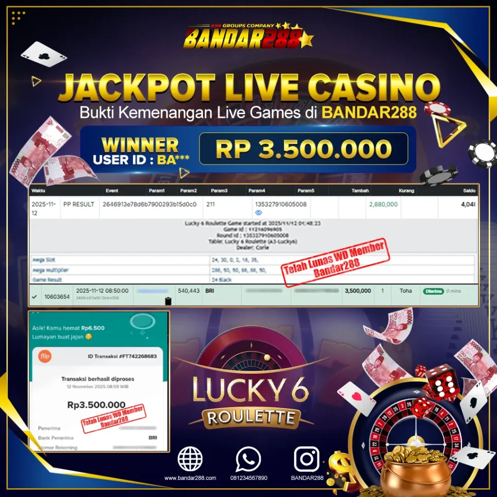 Bukti kemenangan member adalah bukti bahwa anda juga berhak atas semua kemenangan yang ada di situs live casino gampang jackpot Bandar288.