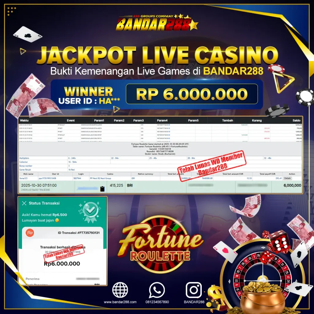 Bukti kemenangan member adalah bukti bahwa anda juga berhak atas semua kemenangan yang ada di situs live casino gampang jackpot Bandar288.