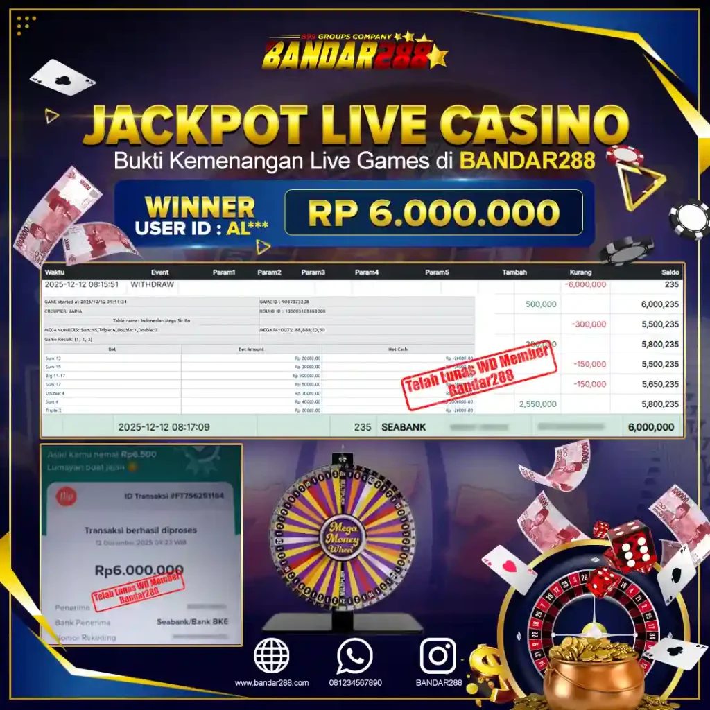Bukti kemenangan member adalah bukti bahwa anda juga berhak atas semua kemenangan yang ada di situs live casino gampang jackpot Bandar288.