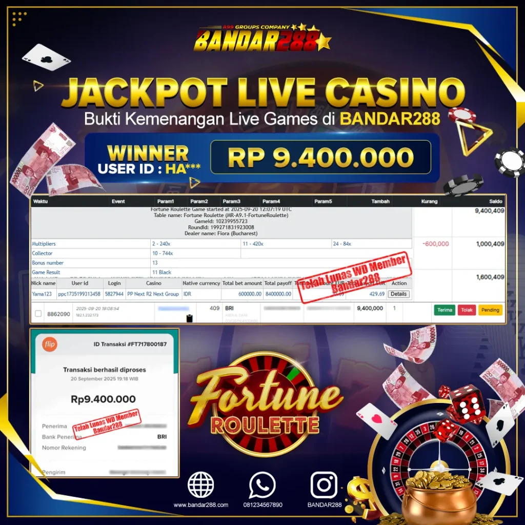 Bukti kemenangan member adalah bukti bahwa anda juga berhak atas semua kemenangan yang ada di situs live casino gampang jackpot Bandar288.