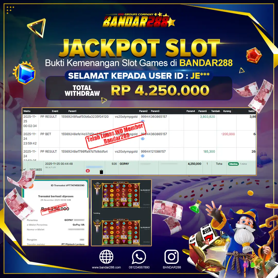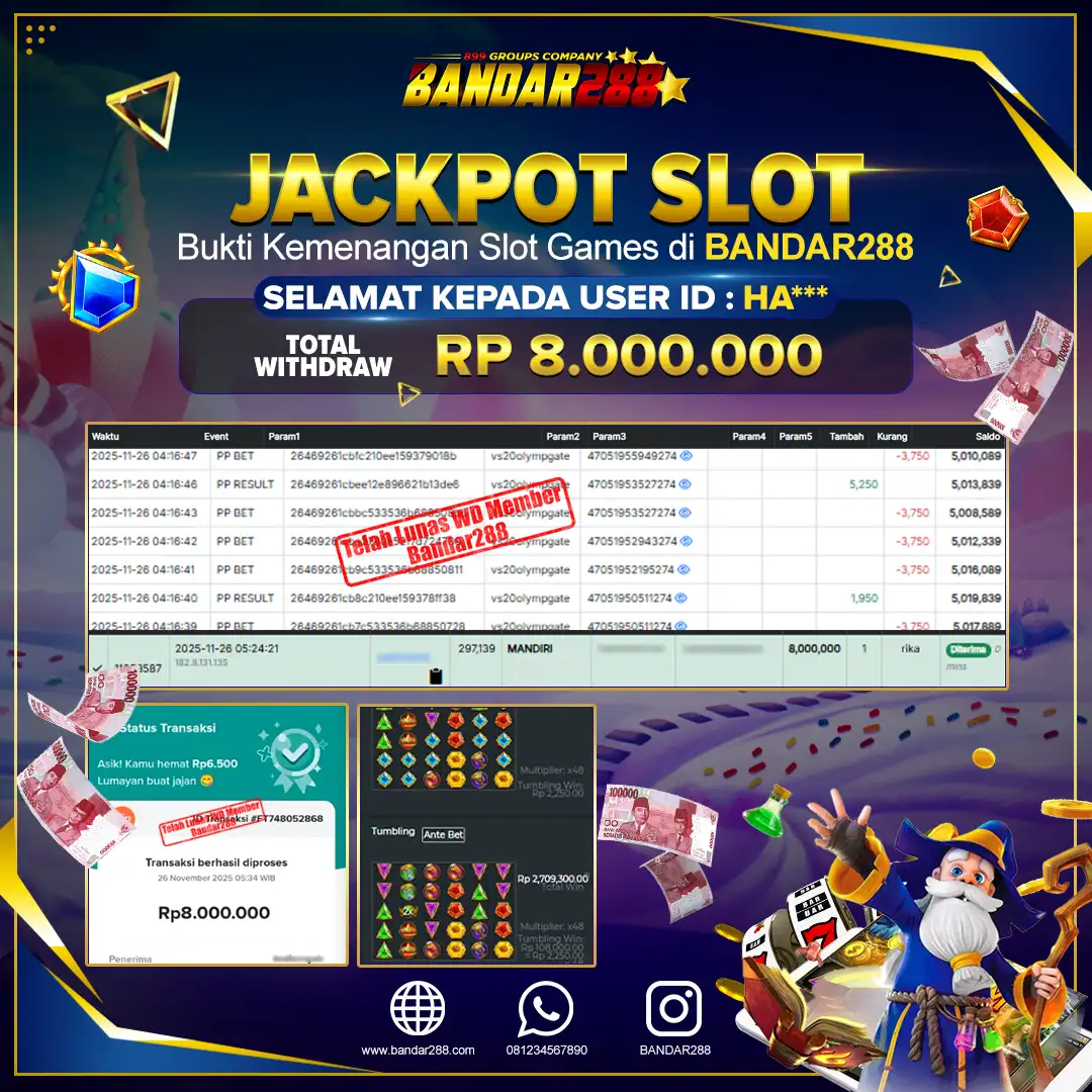 Bukti kemenangan member adalah bukti bahwa anda juga berhak atas semua kemenangan yang ada di situlive casino gampang jackpot Bandar288.
