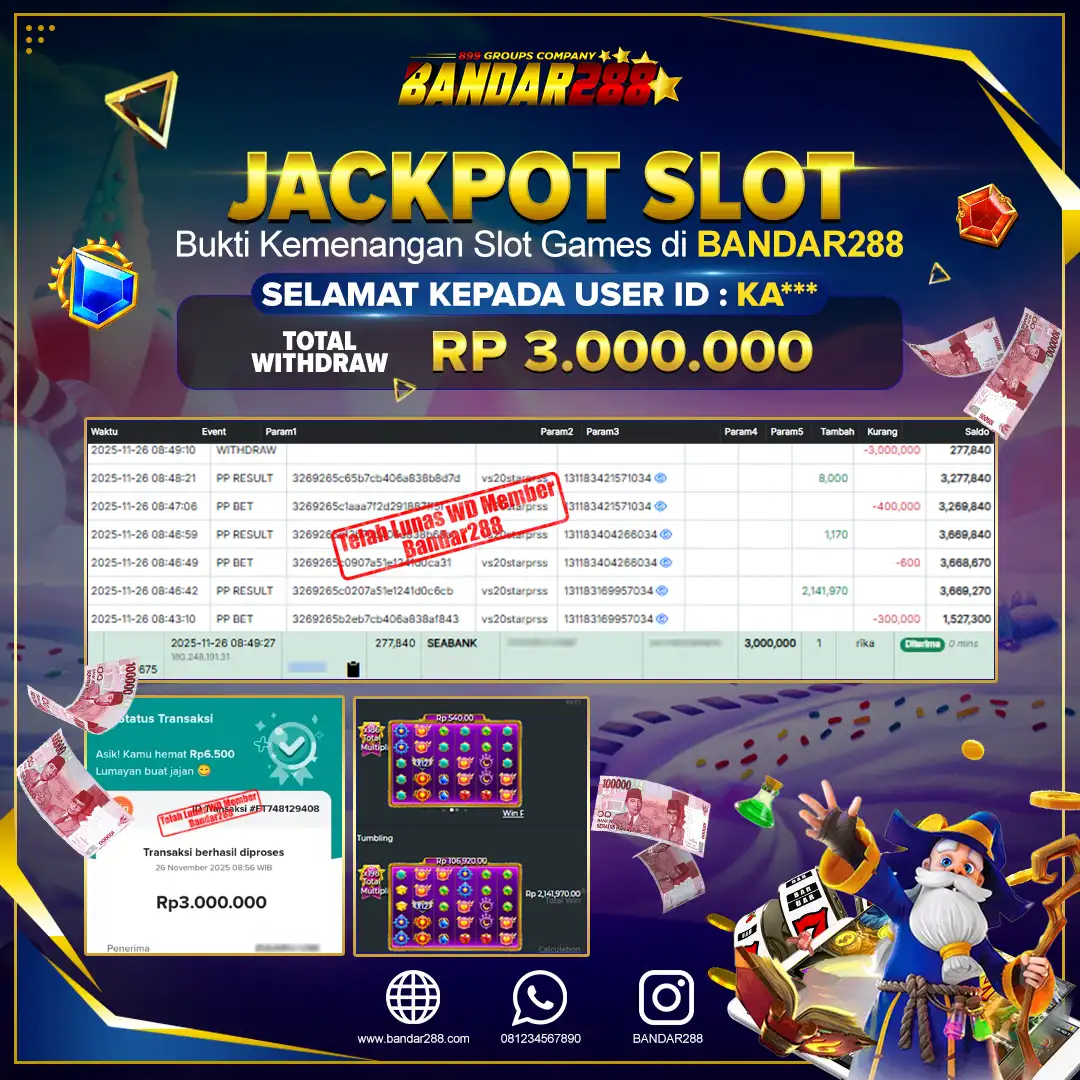 Bukti kemenangan member adalah bukti bahwa anda juga berhak atas semua kemenangan yang ada di situs slot gacor Bandar288. Link