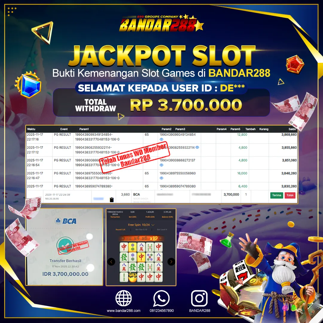 Bukti kemenangan member adalah bukti bahwa anda juga berhak atas semua kemenangan yang ada di situs slot gacor Bandar288. Link