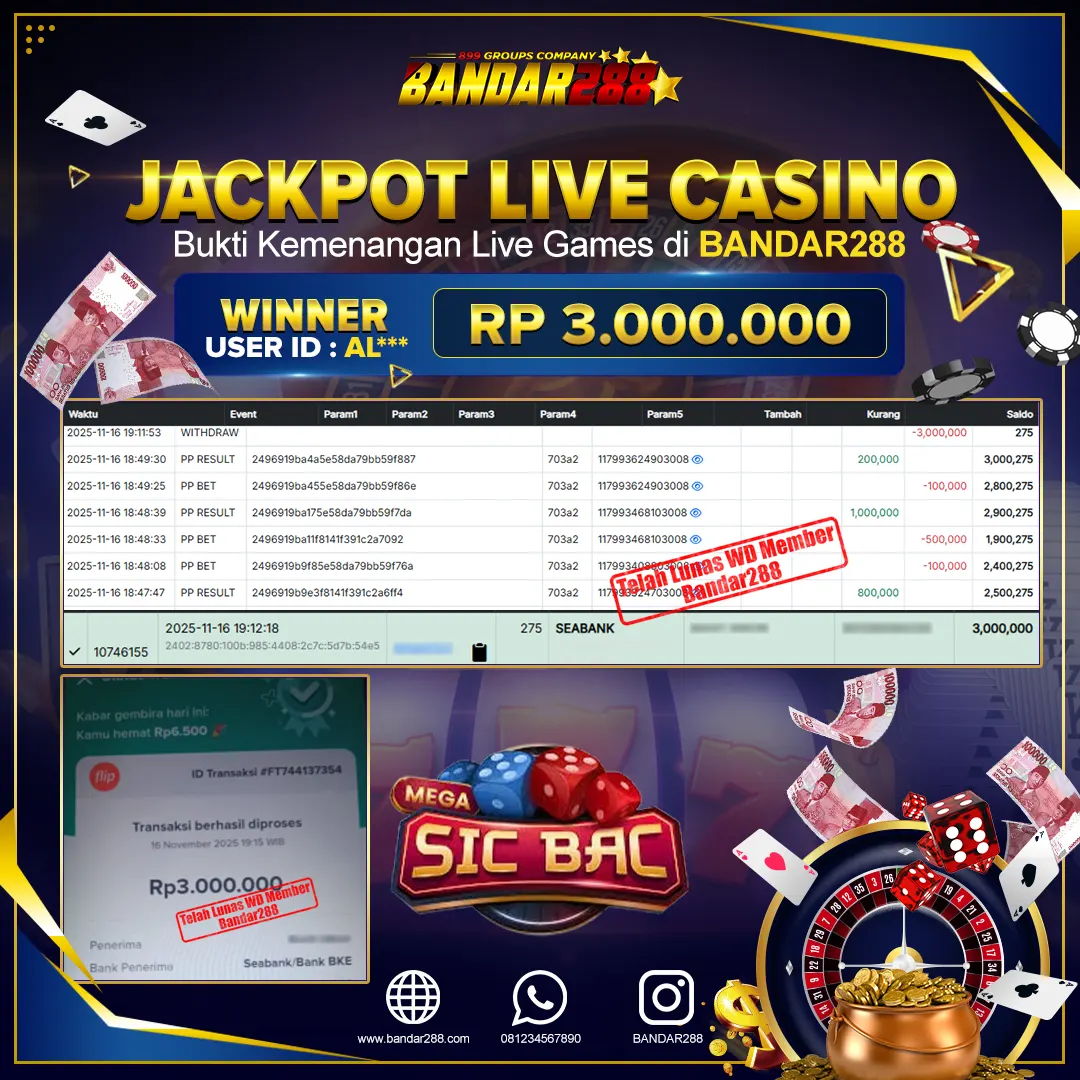 Bukti kemenangan member adalah bukti bahwa anda juga berhak atas semua kemenangan yang ada di situs live casino Bandar288. Link