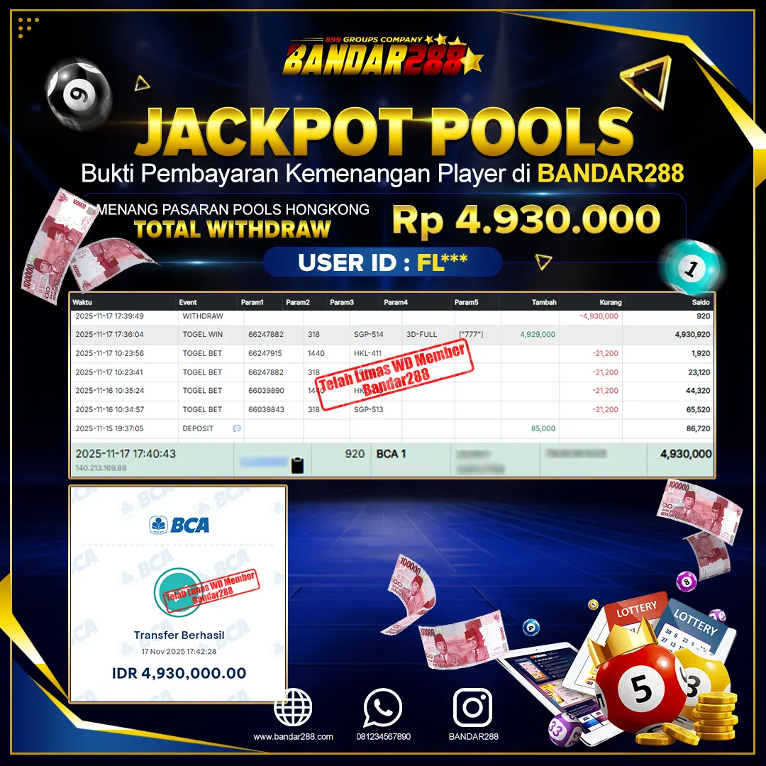Bukti kemenangan member adalah bukti bahwa anda juga berhak atas semua kemenangan yang ada di situs togel gampang jackpot Bandar288.