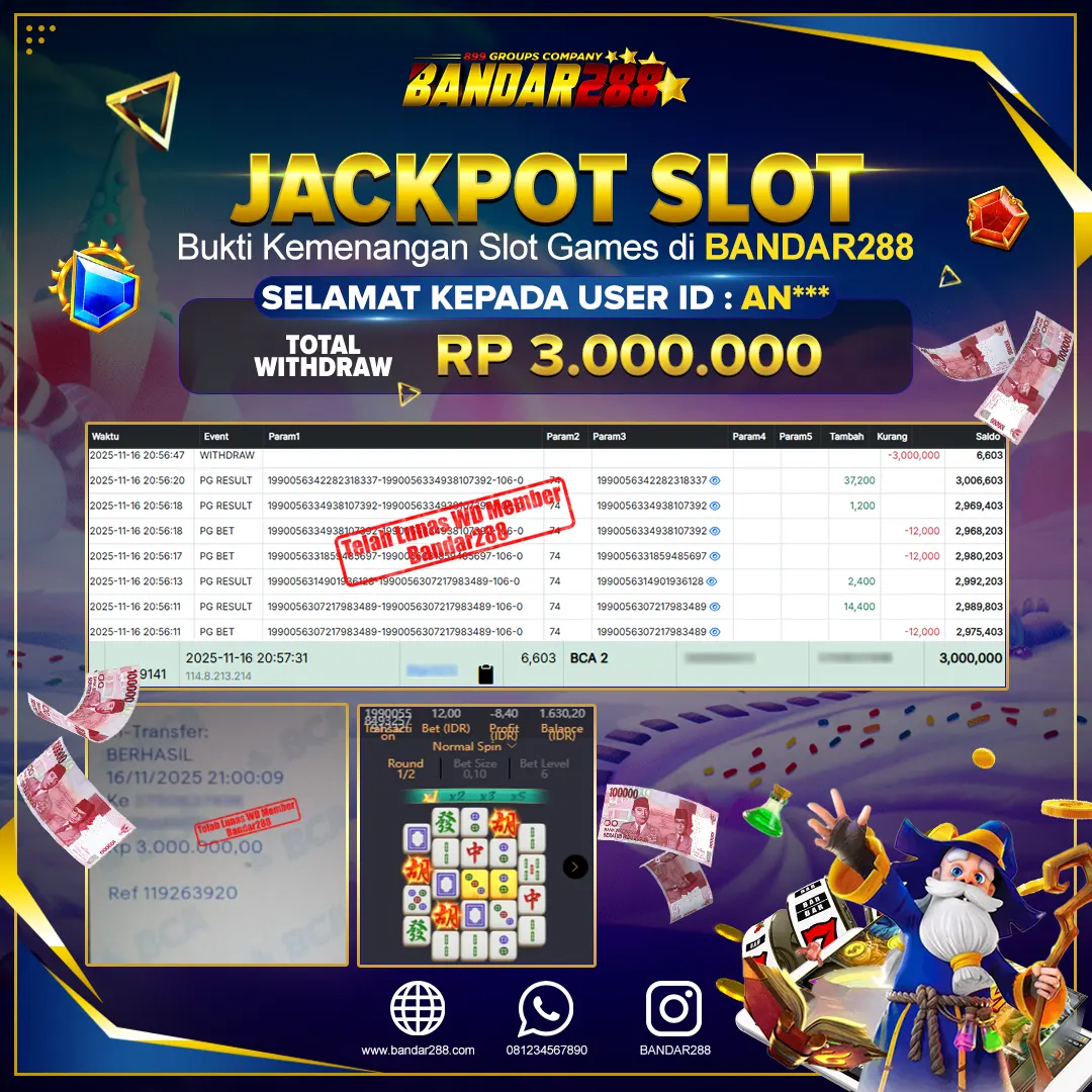 Bukti kemenangan member adalah bukti bahwa anda juga berhak atas semua kemenangan yang ada di situs slot gacor Bandar288. Link