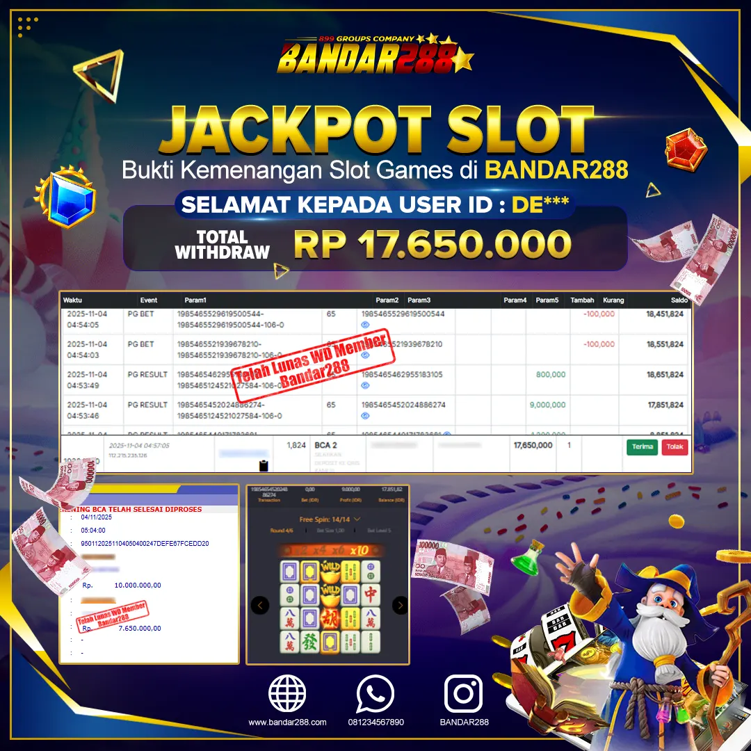 Bukti kemenangan member adalah bukti bahwa anda juga berhak atas semua kemenangan yang ada di situs slot gacor Bandar288. Link